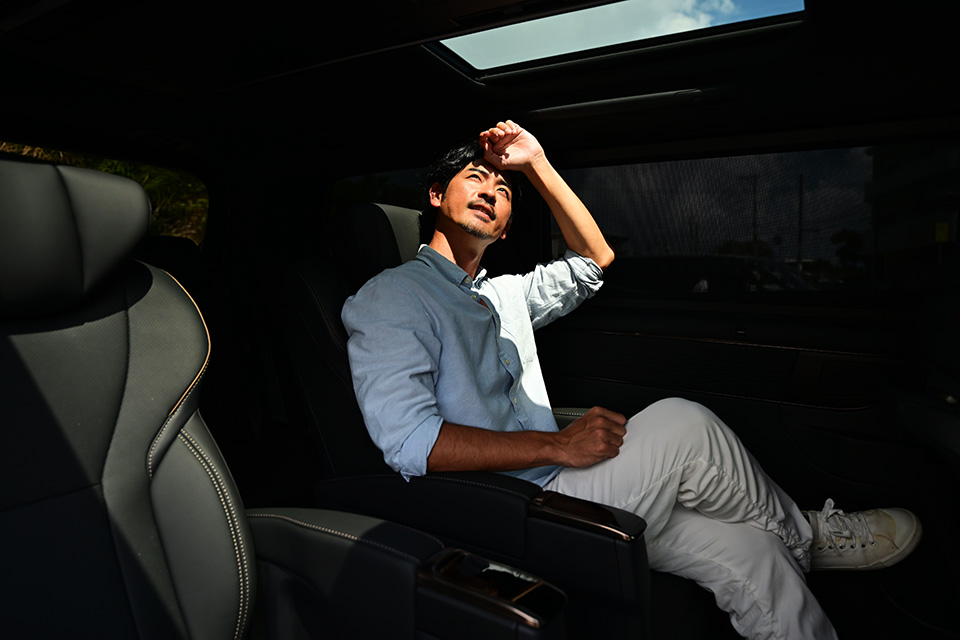 これまで天井各所に分散していた照明やスイッチ類、エアコン吹き出し口をセンターに集約。操作性が向上し、よりスマートな空間へと進化しています。読書灯やリアシートモニター(オプション)も備え、まるでファーストクラスの機内を思わせる贅沢な時間を演出します。